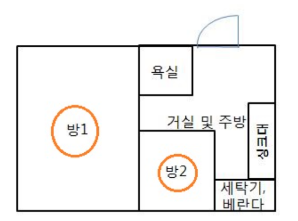 방2개와 거실(주방)이 별도의 공간으로 분리방 같은 공간 1개 (별도 공간) 방2개 (별도 공간) 거실(주방) 별도 공간 별도 공간 화장실 별도 공간 별도 공간 별도 공간 * 주방은 거실과 같은 공간에 있어도 되고 다른 공간에 있는 경우도 있습니다. 예를 들어 원룸이면 방과 거실이 같은 공간이면 되는데 주방이 거실과 같은 공간에 있어도 되고, 세탁기와 다른 공간에 있어도 되는데 주방이 다른 공간에 있어도 방과 거실이 같은 공간이면 원룸에 해당 됩니다.